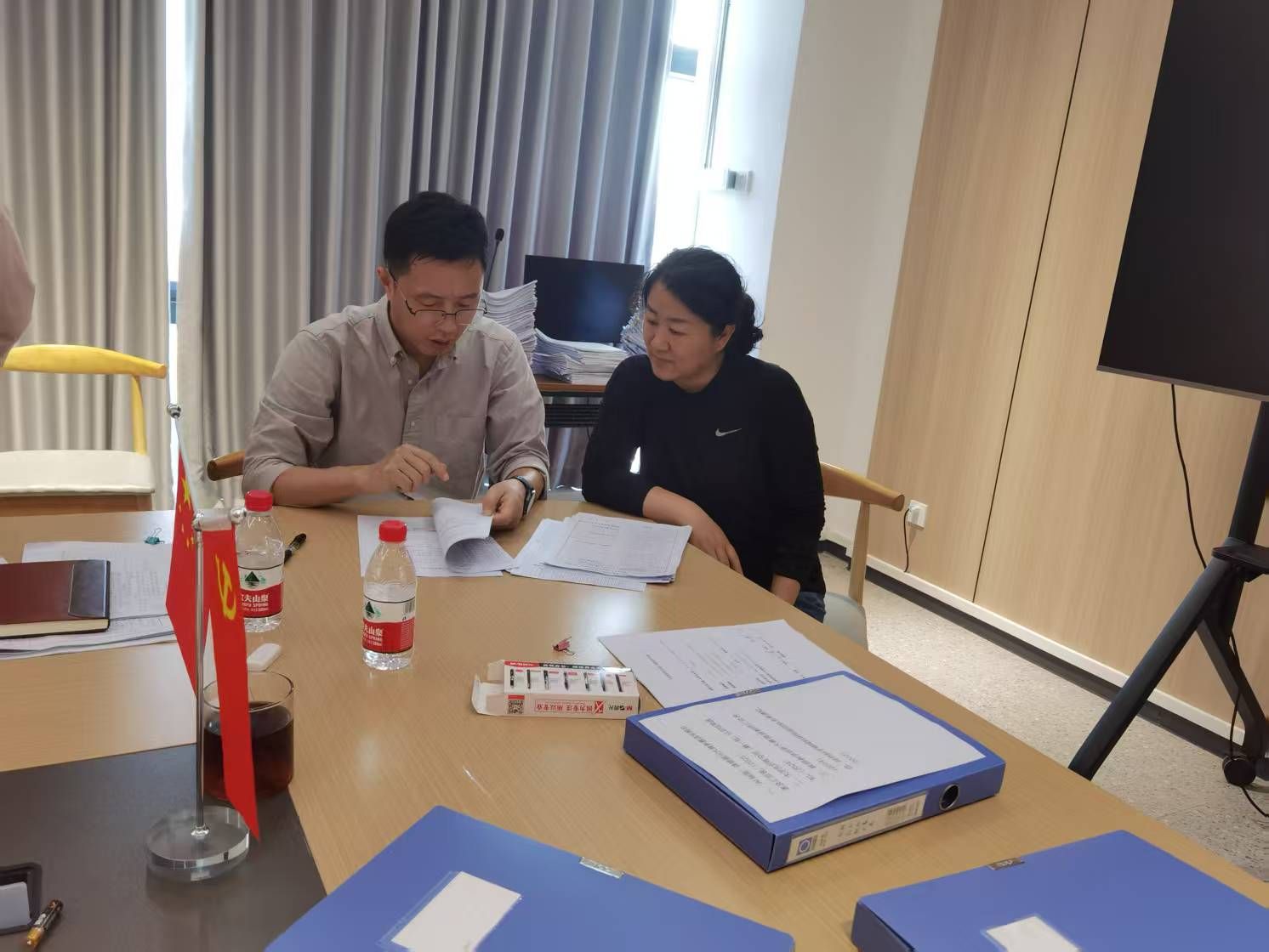 2024年4月8日下午14:20—16:00,第三次检查工作在公司507会议室进行,通过对所有的资料的全面复审,针对个别教师的资料存在的问题,现场通知任课老师修正。